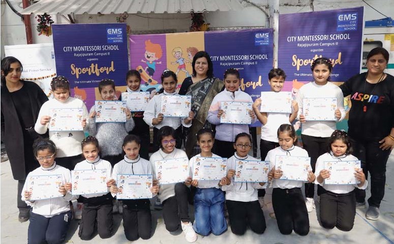 लखनऊ, 2 फरवरी। सिटी मोन्टेसरी स्कूल, राजाजीपुरम द्वितीय कैम्पस द्वारा ‘मिनी स्पोर्टस डे’ का भव्य आयोजन आज विद्यालय के खेल मैदान में सम्पन्न हुआ। इस अवसर पर प्री-प्राइमरी एवं प्राइमरी के नन्हें-मुन्हें छात्रों ने अपनी अभूतपूर्व खेल प्रतिभा से दर्शकों को मंत्रमुग्ध कर दिया एवं चुस्ती-फुर्ती से परिपूर्ण फिजिकल फिटनेस एक्टिवटी द्वारा इण्डिया फिट एण्ड यंग का सन्देश दिया। खेल समारोह का शुभारम्भ स्कूल प्रार्थना, सर्व-धर्म प्रार्थना एवं विश्व शान्ति प्रार्थना से हुआ एवं इसके उपरान्त खेल की विभिन्न प्रतियोगिताओं में सर्वाधिक पदकों के जबरदस्त होड़ रही और छात्रों ने अपनी शक्ति, दमखम, प्रतिभा व क्षमता का भरपूर प्रदर्शन किया। विद्यालय के छात्रों ने विभिन्न प्रकार की रोचक दौड़ प्रतियोगिताओं एवं एरोबिक्स प्रतियोगिताओं समेत विभिन्न खेलों में अपनी खेल प्रतिभा का गजब का प्रदर्शन किया। खेल प्रतिस्पर्धाओं में विजयी छात्रों को सार्टिफिकेट, मैडल व शील्ड प्रदान कर पुरष्कृत कर सम्मानित किया गया। इसके अलावा, छात्रों के माता-पिता व अभिभावकों ने भी म्यूजिकल चेयर एवं ड्रैग द बॉल जैसी रोचक प्रतियोगिताओं में प्रतिभाग कर छात्रों का उत्साहवर्धन किया।